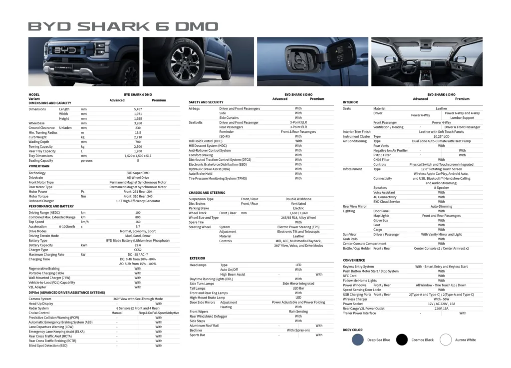 The BYD Shark 6 DMO is priced at P2,098,000 for the Advanced variant and P2,298,000 for the Premium variant.