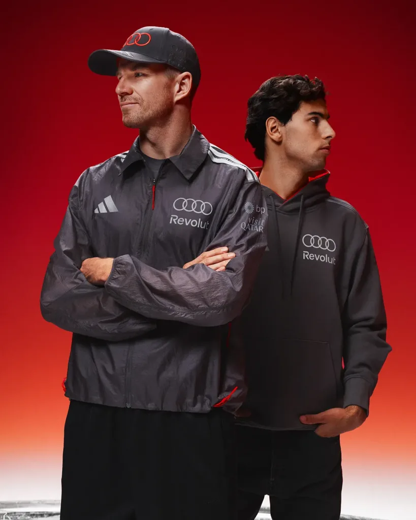 On the performance side, Audi Revolut F1 Team and adidas unveiled official teamwear in Berlin in January. The functional kit incorporates adidas technologies and is tailored by role, from performance-led driver apparel to ergonomically considered pieces for engineers and more rugged, task-ready items for mechanics. The palette draws on “subtle gray and chalk tones” inspired by the “titanium-colored paintwork of the Audi R26,” with red accents tying into Audi’s broader Formula 1 visual identity.